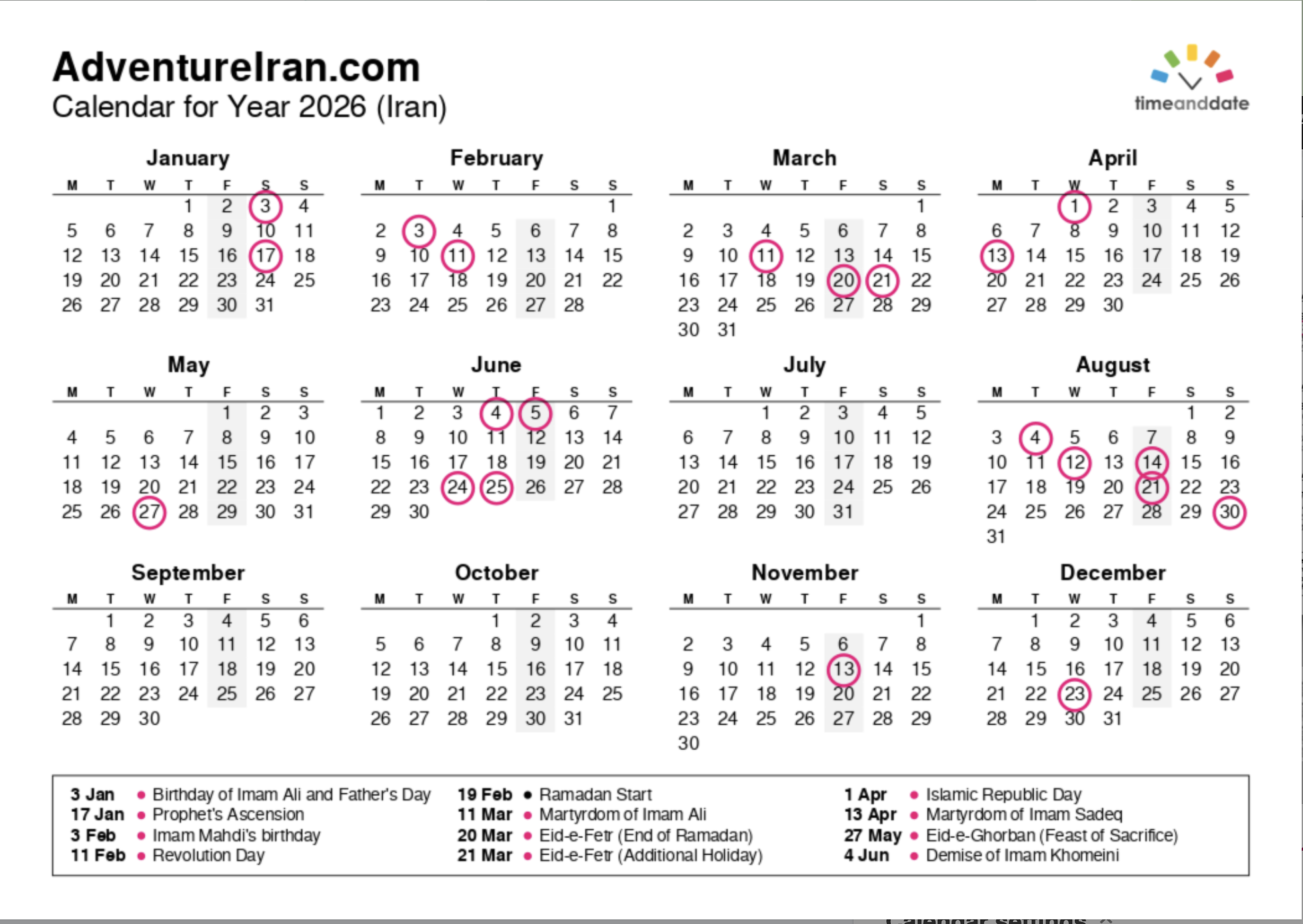 Iran Weekends and National holidays